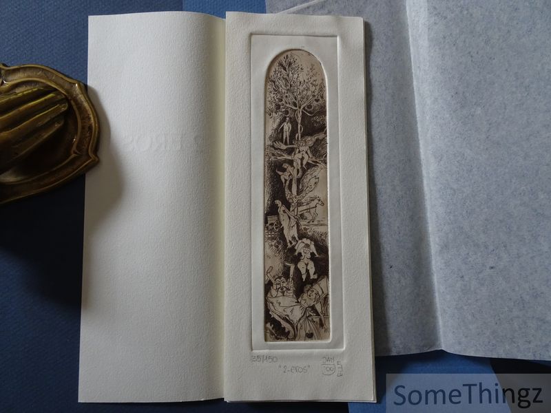 Vouwmapje met 8pp. op 4 bladen en een origine kopergravure, 9x22.5cm., in zeer goede staat. In colofon gesigneerd door J.J. Camps, de gravure door de kunstenares gesigneerd in potlood.