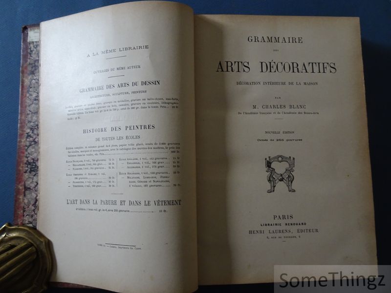 Grammaire des arts du dessin. Architecture, sculpture, peinture. Jardins, gravures en pierres fines, gravures en médailles, en taille-douce, eau-forte, manière-noire, aquatinte, gravure en bois, camaïeu, gravure en couleurs, lithographie. Nouvelle édition ornée de 255 gravures.