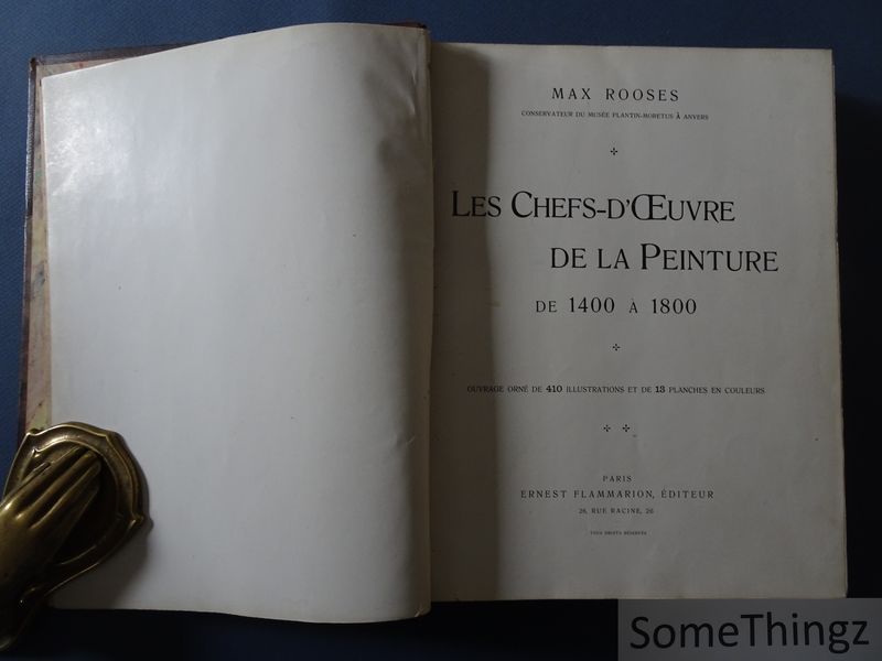 Le livre propose une vaste panorama de la peinture européenne entre 1400 et 1800. Max Rooses y présente les écoles flamande, hollandaise, italienne, française, espagnole, allemande et anglaise, illustrant ses propos par de nombreuses reproductions. Chaque section est accompagnée d?une introduction historique et deun commentaire de certaines oeuvres majeures. On y trouve un frontispice en couleurs, 13 planches hors-texte en couleur, et environ 410 illustrations en noir et blanc, tant dans le texte qu'hors texte. Maximilien "Max" Rooses (10 février 1839 - 15 juillet 1914) était un critique littéraire, historien de l'art et conservateur belge. Il enseigna le néerlandais dans des écoles à Namur puis Gand avant d'être nommé en 1876 conservateur du musée Plantin-Moretus à Anvers. Il s'est aussi fait connaître comme érudit de Rubens et éditeur de correspondances artistiques. Il fut membre de l'Académie royale de Belgique et joua un rôle actif dans le milieu culturel flamand.