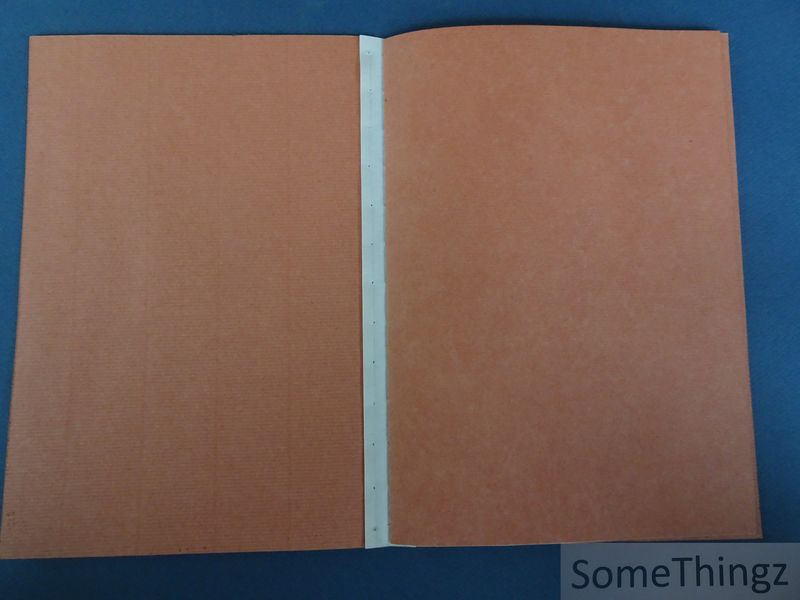 Artistic binding (2 wooden boards, 2 metal strips and nylon thread, orange endpapers), 4 pp., handprinted in black and red typography, 18.5x26cm., in very good condition.