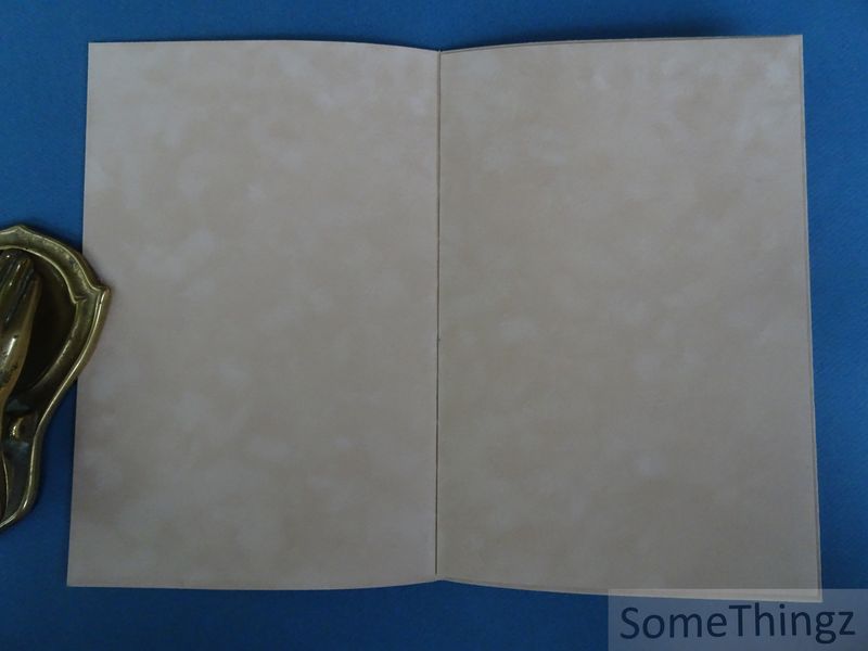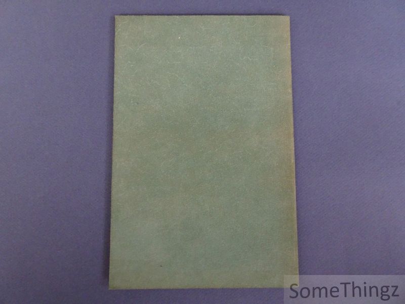 Artistieke band (grof geschuurd lederen / suède bandje), schutbladen in bruin velours, 1pp., tweekleurendruk, 15.5x23.5cm., in zeer goede staat.