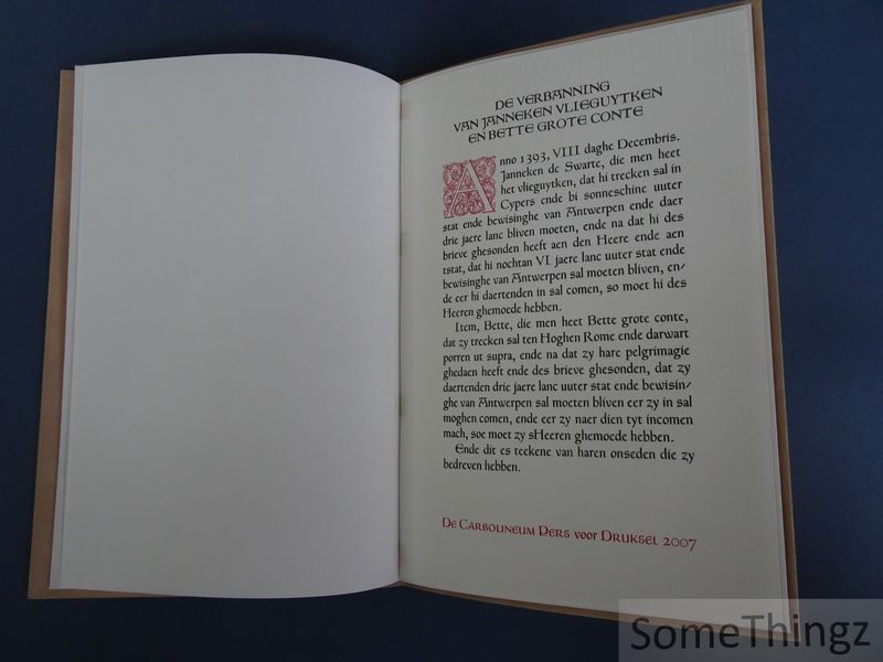 In beperkte oplage met de hand gezet en gedrukt in rood en zwart door Boris Rousseeuw (De Carbolineum Pers voor Druksel 2007),