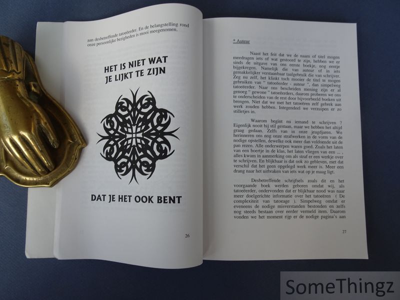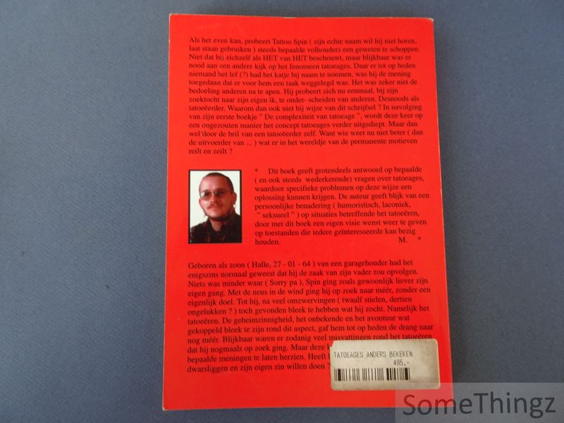 Als het even kan, probeert Tattoo Spin ( zijn echte naam wil hij niet horen, laat staan gebruiken ) steeds bepaalde volhouders een geweten te schoppen. Niet dat hij zichzelf als HET van HET beschouwt, maar blijkbaar was er nood aan een andere kijk op het fenomeen tatoeages. Daar er tot op heden niemand het lef (?) had het katje bij naam te noemen, was hij de mening toegedaan dat er voor hem een taak weggelegd was. Het was zeker niet de bedoeling anderen na te apen. Hij probeert zich nu eenmaal, bij zijn zoektocht naar zijn eigen ik, te onder- scheiden van anderen. Desnoods als tatoeëerder. Waarom dan ook niet bij wijze van dit schrijfsel ? In navolging van zijn eerste boekje ? De complexiteit van tatoeage ?, wordt deze keer op een ongezouten manier het concept tatoeages verder uitgediept. Maar dan wel door de bril van een tatoeëerder zelf. Want wie weet nu niet beter ( dan de uitvoerder van ... ) wat er in het wereldje van de permanente motieven reilt en zeilt ?