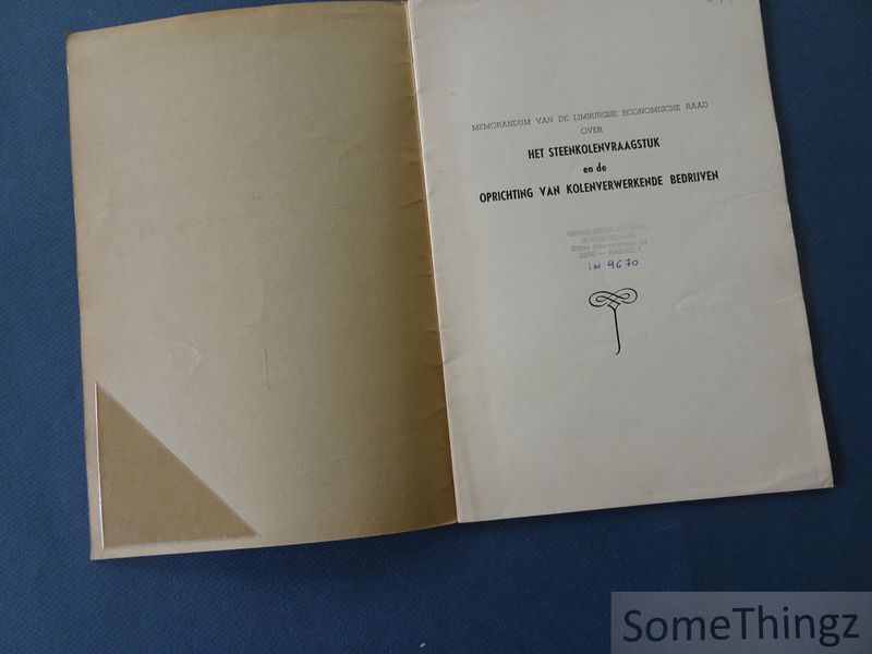 Memorandum van de Limburgse Economische Raad over het steenkolenvraagstuk en de oprichting van kolenverwerkende bedrijven.