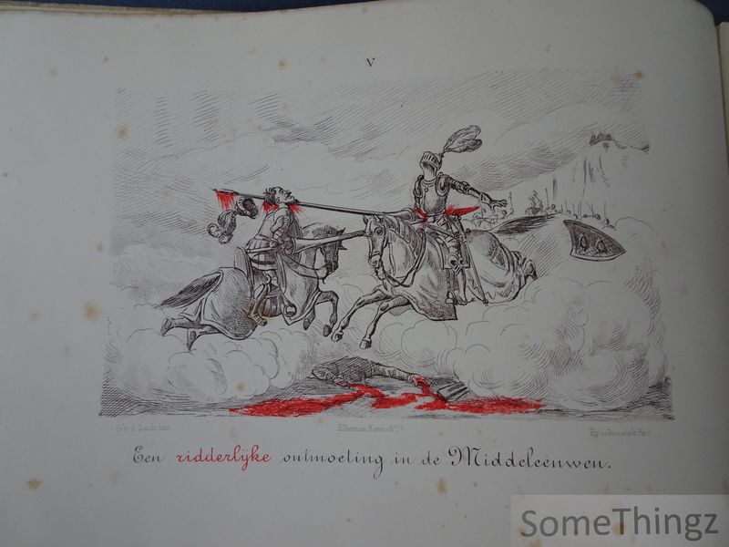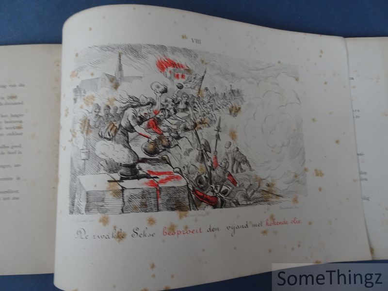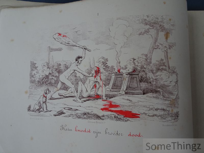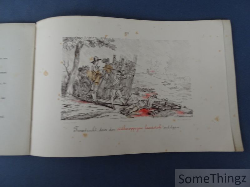 Gebrocheerd (zonder band), 107pp., 28x19cm., oblong, bevat 16 buitentekst ills. in zwart-rood (bloed of wonden worden steeds in het rood gekleurd), in slechte staat (geen band, sommige platen wat roestvlekkig, desondank een goed lees- en bruikbaar exemplaar).