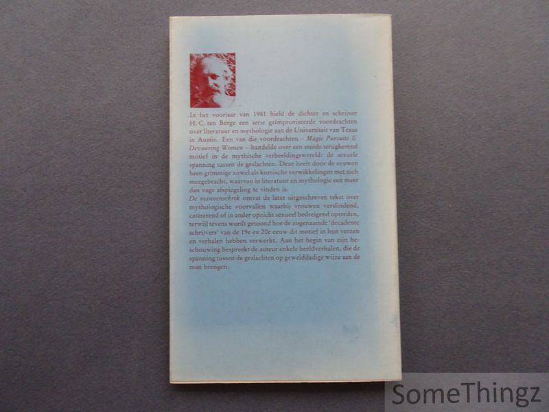 Dit werk van Ten Berge is een essayistische verkenning van het motief van de 'verslindende vrouw' zoals dat voorkomt in literatuur en mythologie. Hij analyseert hoe vrouwenfiguren in mythen en verhalen vaak geportretteerd worden als gevaarlijk, erotisch en vernietigend: ze zijn mythologische archetypes die angst en fascinatie opwekken. Het essay onderzoekt hoe dit motief cultureel en psychologisch werkt, en welke symboliek en onderliggende betekenis het draagt in verschillende tradities.