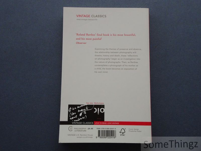 Examining the themes of presence and absence, the relationship between photography and theatre, history and death, these 'reflections on photography' begin as an investigation into the nature of photographs. Then, as Barthes contemplates a photograph of his mother as a child, the book becomes an exposition of his own mind.