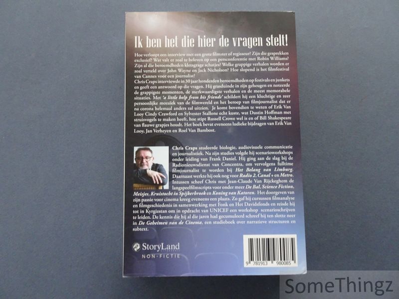 Hoe verloopt een interview met een grote filmster of regisseur? Zijn die gesprekken exclusief? Wat valt er zoal te beleven op een persconferentie met Robin Williams? Zijn al die beroemdheden kletsgrage schatjes? Welke grappige verhalen worden er zoal verteld over John Wayne en Jack Nicholson? Hoe slopend is het filmfestival van Cannes voor een journalist? Chris Craps interviewde in 30 jaar honderden beroemdheden op festivals en junkets en geeft een antwoord op die vragen. Hij grasduinde in zijn geheugen en noteerde de grappigste momenten, de merkwaardigste verhalen en de meest memorabele situaties. Met 'a little help from his friends' schildaert hij een kluchtige en zeer persoonlijke mozaïek van de filmwereld en het beroep van filmjournalist dat er na corona helemaal anders zal uitzien. Je komt bovendien te weten of Erik Van Looy Cindy Crawford en Sylvester Stallone echt kuste, wat Dustin Hoffman met struisvogels te maken heeft, hoe stipt Russell Crowe wel is en of Bill Shakespeare van flauwe grapjes houdt. Bevat eveneens ervaringen en leuke anekdotes van Erik Van Looy en Jan Verheyen over dit onderwerp. 'Ik ben het die hier de vragen stelt' is een leuk boek voor elke filmliefhebber, maar een 'must' voor elke student journalistiek. Lees tussen de regels hoe je de sterren moet benaderen en ook wat je beter niet doet. Krijg inzage in de karakters van talrijke bekende gezichten, maar vooral geniet van de bekende oneliners en leukste fragmenten uit vele interviews.