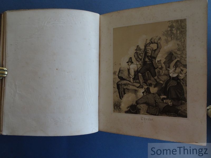 2 annuals in one volume (contemporary percaline binding: gilt tile and decoration on spine), 42pp., 29 b/w plates and 2 chromolithogr. title-illustrations + 42pp., 27 b/w. plates and 2 chromolithogr. title-illustrations, 23x26.5cm., in fair condition (spine looks re-attached with glue, covers a bit rubbed and damaged, interior with some foxing, some protective ricepaperpages are missing).