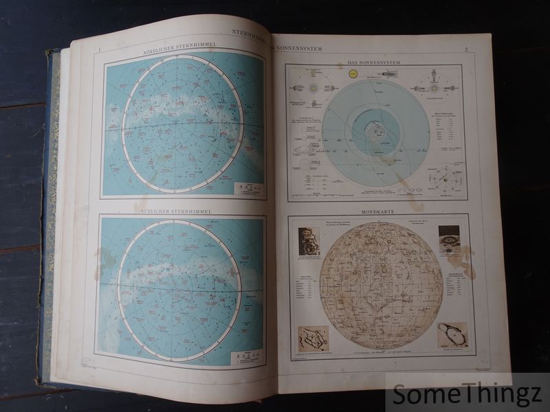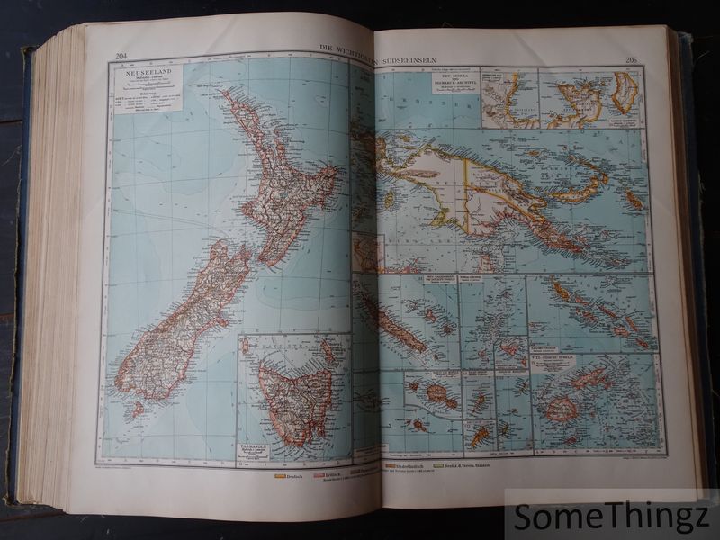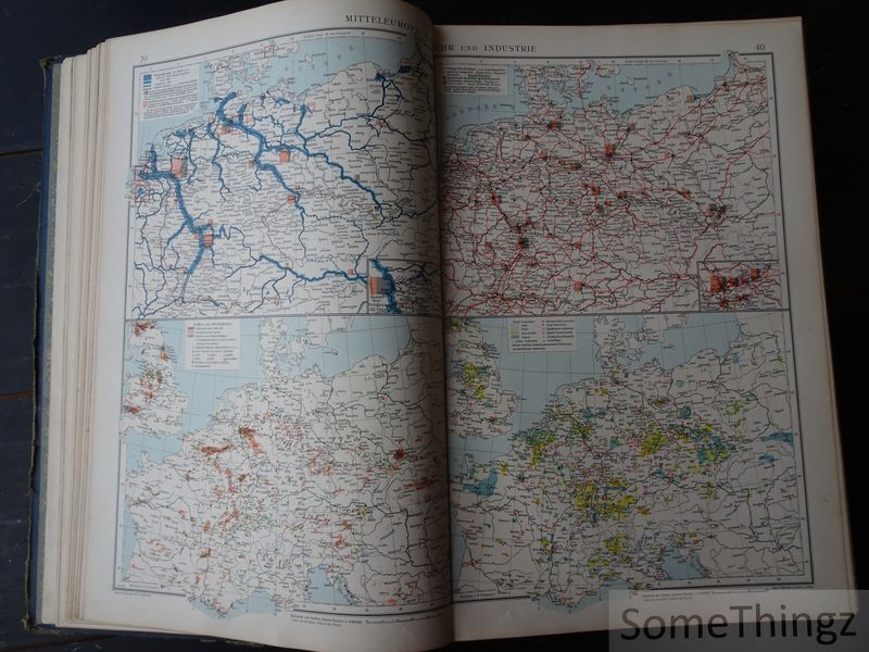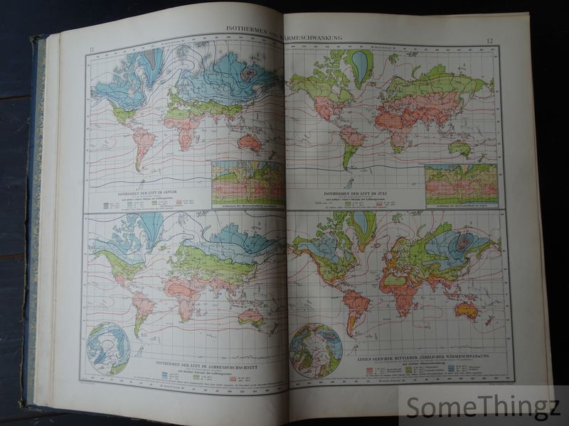 Bound, halfleather binding with gilt title and decoration on spine, 207pp. with full-colored maps and 187pp wth indices, 30.5x46cm., in acceptable condition (binding in poor condition: spine partly damaged, upperpart of spine glued, edges and corners rubbed, title-page with some scribbles in ink, maps and register in good condition: see pictures). Large and heavy volume (nearly 7 kilo's): may require extra shipping costs.