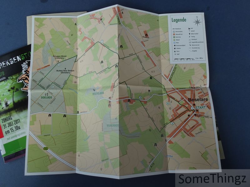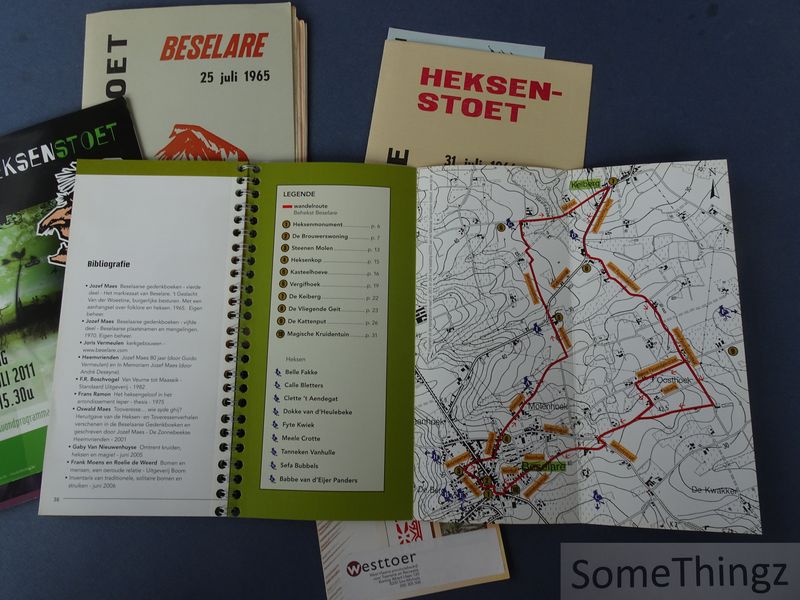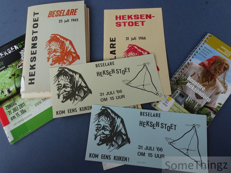 Lot documentatie (3 programmaboekjes, wandelkaart, enkele krantenknipsels, flyers en enkele pagina's gestencilde tekst) betreffende de Heksenstoet te Beselare. Alles in goede staat (wel met een klevertje op de omslagen).
