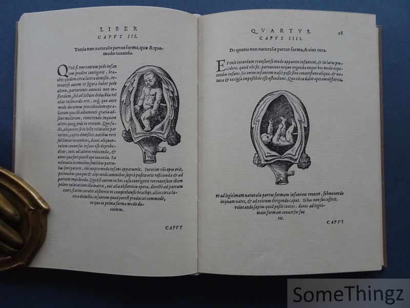 De Conceptu et Generatione Hominis (On the Conception and Generation of Man) is an influential historical medical treatise written by the Swiss surgeon and author Jakob Rueff (also known as Jacob Rueff or Jacobus Ruffius). The work served as a primary textbook for midwives and physicians during the Renaissance. It covers obstetrics, human reproduction, female anatomy, fetal development in the womb, and the duties of midwives during childbirth. The book is famous for its detailed woodcuts (often attributed to artist Jost Amman). These illustrations depict the uterus, birth positions, surgical instruments, and even "monstrous" births or deformities, which were a common fascination of the era. It was one of the first works to provide a systematic and illustrated guide to midwifery, bridging the gap between medieval folklore and early modern medical science. This edition, specialy printed for the members of Edition Medicina Rara Ltd, is a facsimile of the original 1587 Frankfurt edition.