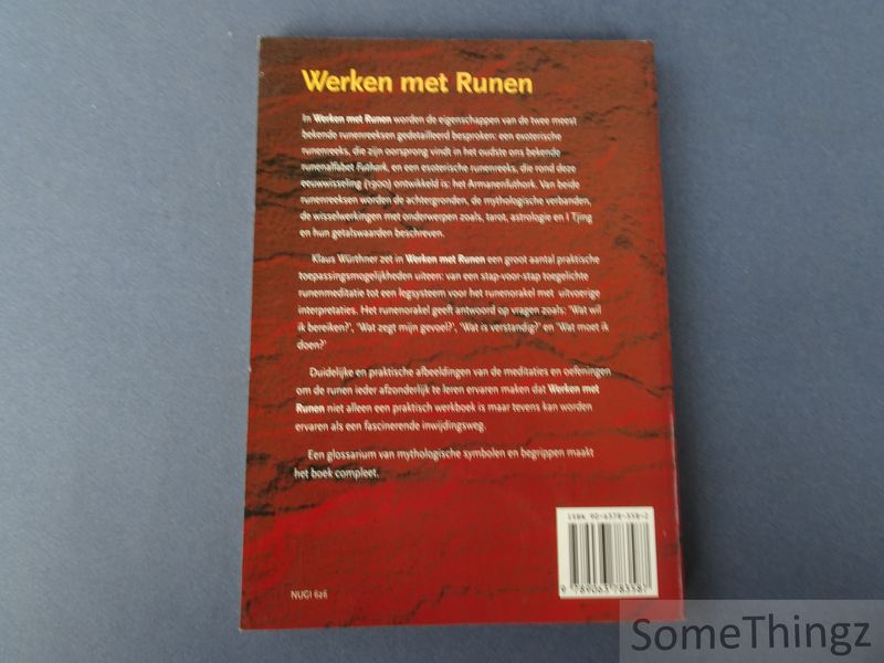 In werken met runen worden de eigenschappen van de twee meest bekende runenreeks gedetailleerd besproken: een exoterische runenreeks, die zijn oorsprong vindt in het oudste ons bekende runenalfabet Futhark, en een esotische runenreeks, die rond deze eeuwenwisseling (1900) ontwikkeld is: de mythologische verbanden, de wisselwerkingen met onderwerpen zoals, tarot, astrologie en I Tjing en hun getalswaarden beschreven. Klaus Wurthner zet in werken mer runen een groot aantal praktische toepassingsmogelijkheden uiteen: van een stap voor stap toegelicht runenmeditatie tot een legsysteem voor het runenorakel met uitvoerige interpretaties. Het runenorakel geeft antwoord op vragen zoals: wat wil ik bereiken? Watzegt mijn gevoel? Wat is verstandig? En wat moet ik doen. Duidelijke en praktische afbeeldingen van de meditaties en oefeningen om de runen ieder afzonderlijk te leren ervaren maken dat werken met runen niet alleen een praktisch werkboek is maar tevens kan worden ervaren als een fascinerende inwijdingsweg.