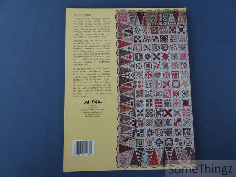 Dear Jane presents the complete set of two hundred twenty-five quilt block patterns derived from the celebrated Jane A. Stickle quilt of 1863. The book provides clearly drafted patterns and construction guidance, enabling quilters to reproduce or reinterpret one of the most iconic works in American quilt history. This volume constitutes a systematic documentation of the 225 individual quilt blocks composing the Jane A. Stickle quilt, created in 1863 and regarded as a landmark in nineteenth-century American textile art. Brenda Manges Papadakis translates the original quilt into standardized patterns accompanied by technical diagrams and explanatory notes, allowing for accurate reconstruction using traditional piecing and appliqué methods. Beyond its practical function, the book situates the quilt within its historical and cultural context, reflecting domestic craftsmanship, regional design traditions and the creative agency of women in mid-nineteenth-century America. As such, the publication serves both as a working manual for experienced quilters and as a documentary source for the study of historic quilts and textile heritage. Brenda Manges Papadakis is an American quilt historian, designer and author, best known for her work on historic quilt patterns. Through her publications, she has contributed significantly to the documentation, preservation and reinterpretation of nineteenth-century American quilts, combining technical accuracy with historical awareness. Her work is widely used by both practicing quilters and scholars of textile history.