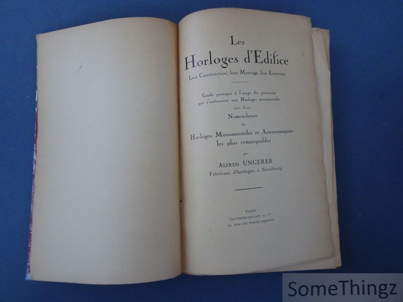 Les horloges d'édifice, leur construction, leur montage, leur entretien. Guide pratique à l'usage des personnes qui s'intéressent aux horloges monumentales, suivi d'une nomenclature des horloges monumentales et astronomiques les plus remarquables. [Avec dédicace d'Alfred Ungerer!]
