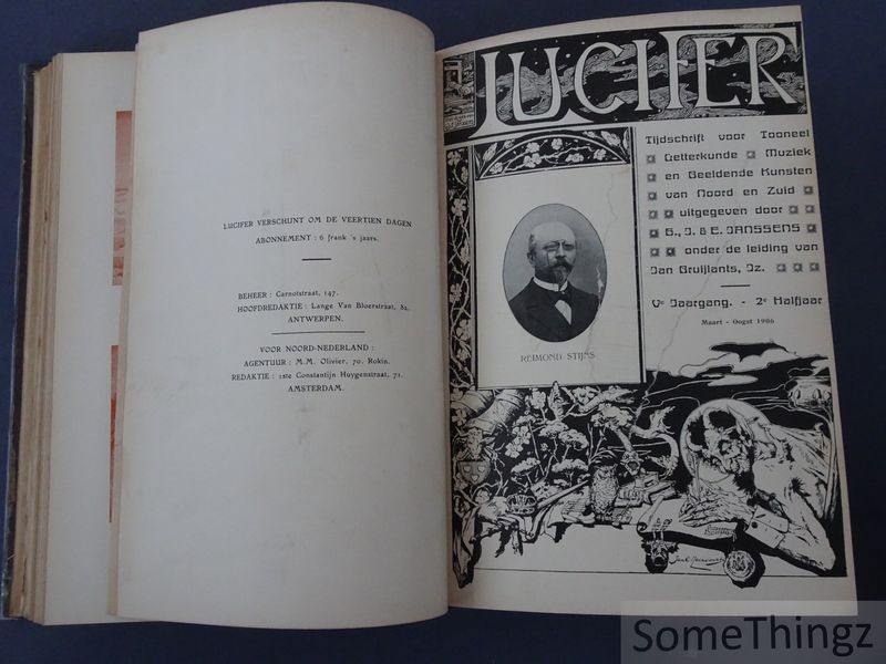 Lucifer : tijdschrift voor tooneel, letterkunde, muziek, en beeldende kunsten van Noord en Zuid. Ve jaargang, 1e halfjaar (september 1905 - februari 1906) en 2e halfjaar (maart - oogst 1906). Verschijnt om de veertien dagen.