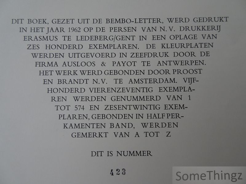 Gebonden, linnen rug, gekartonneerde platten, in originele schuifdoos 621pp., 22,5x30,5cm., geïllustr. in kleur en z/w., in goede staat (schuifdoos met gebruikssporen aan de randen en hoeken, rug lichtjes bevuild en komt een beetje los, binnenin zeer goed). Nr. 423 van 600 genummerde exemplaren.