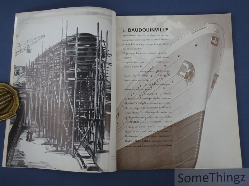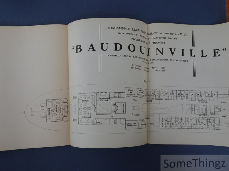 Paquebot Baudouinville est un ouvrage illustré publié en 1939 par la Compagnie maritime belge, consacré à la présentation du paquebot Baudouinville, navire emblématique de la flotte de la CMB. Conçu comme un livre de prestige et de promotion institutionnelle, il met en valeur les lignes modernes du navire, ses aménagements intérieurs, ses équipements techniques et son rôle dans le transport maritime belge à la veille de la Seconde Guerre mondiale. Cette publication vraiment rare s'inscrit dans la tradition des albums photographiques dédiés aux grands paquebots, associant fierté industrielle, esthétique moderne et communication d'entreprise. L'ouvrage se compose principalement de planches illustrées et de photographies présentant le paquebot Baudouinville sous différents angles, depuis ses vues extérieures jusqu'aux espaces intérieurs réservés aux passagers et à l'équipage. Les images mettent en évidence l'architecture navale, les ponts, les cabines, les salons et les installations techniques, tout en soulignant le confort et la modernité du navire. Le livre s'inscrit dans un contexte historique précis, celui de l'expansion maritime belge de l'entre-deux-guerres, et constitue un témoignage visuel et documentaire de la propagande industrielle et maritime de l'époque. Par son caractère illustré et institutionnel, il relève à la fois du livre d'art, du photobook et du document historique maritime. La Compagnie maritime belge, fondée à la fin du XIXe siècle, fut l'un des principaux acteurs du transport maritime belge et international. Elle joua un rôle majeur dans le développement des liaisons transatlantiques et coloniales, ainsi que dans la modernisation de la flotte belge au cours de l'entre-deux-guerres. À travers ses publications officielles, la CMB cherchait à promouvoir son savoir-faire technique, son prestige international et l'image d'une marine marchande moderne et performante. Le paquebot Baudouinville fut un navire à passagers belge emblématique de la navigation coloniale du XX? siècle. Exploité par la Compagnie Maritime Belge, il assurait principalement la liaison entre la Belgique et l'Afrique centrale, notamment le Congo belge, dont il accompagnait les échanges humains, administratifs et économiques. Baptisé du nom de la ville congolaise de Baudouinville (aujourd'hui Moba), le navire s'inscrivait dans une flotte destinée au transport de passagers européens et africains, ainsi que de fret. Le Baudouinville témoigne aujourd'hui d'une période où les paquebots jouaient un rôle central dans les relations entre l'Europe et l'Afrique, avant le déclin progressif de ces lignes maritimes avec l'essor du transport aérien et les bouleversements liés à la décolonisation.