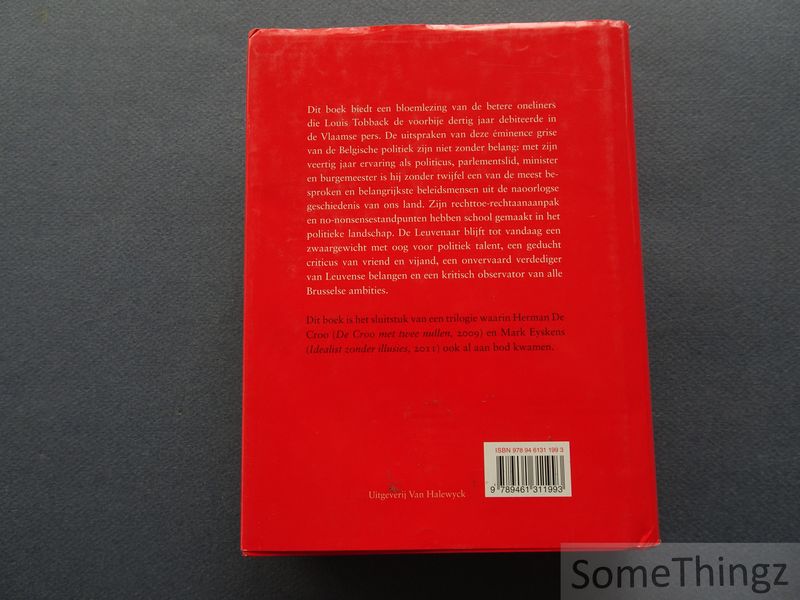 Dit boek biedt een bloemlezing van de betere oneliners die Louis Tobback de voorbije dertig jaar debiteerde in de Vlaamse pers. De uitspraken van deze éminence grise van de Belgische politiek zijn niet zonder belang: met zijn veertig jaar ervaring als politicus, parlementslid, minister en burgemeester is hij zonder twijfel een van de meest besproken en belangrijkste beleidsmensen uit de naoorlogse geschiedenis van ons land. Zijn rechttoe-rechtaanaanpak en no-nonsensestandpunten hebben school gemaakt in het politieke landschap. De Leuvenaar blijft tot vandaag een zwaargewicht met oog voor politiek talent, een geducht criticus van vriend en vijand, een onvervaard verdediger van Leuvense belangen en een kritisch observator van alle Brusselse ambities. Dit boek is het sluitstuk van een trilogie waarin Herman De Croo (De Croo met twee nullen, 2009) en Mark Eyskens (Idealist zonder illusies, 2011) ook al aan bod kwamen.