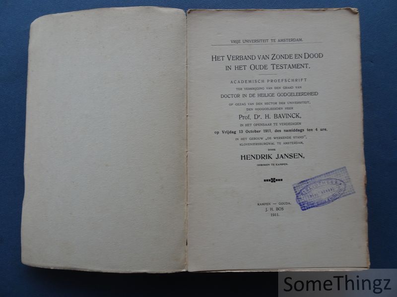 Hendrik Jansen behandelt in dit proefschrift de theologische en exegetische band tussen zonde en dood binnen het Oude Testament. Hij analyseert kernpassages zoals de bedreiging en vervulling van straf in Genesis, de rol van de dood in de wijsheidsliteratuur, en concepten van schuld en straf in de wetgeving van Israël. De studie tracht duidelijk te maken dat de dood in de Bijbelse voorstelling niet louter een biologisch gegeven is maar een theologisch geladen gevolg van zonde, en dat deze idee door de geschiedenis van de joodse religieuze literatuur heen loopt. Hierbij onderzoekt Jansen antwoorden op vragen als: in hoeverre beschouwt het Oude Testament de dood als straf, welke rol speelt zonde hierin, en hoe verschilt dit beeld van latere christelijke interpretaties? Jansen plaatst deze tekstuele analyses in het bredere kader van de bijzondere openbaring en laat zien hoe deze relatie functioneert binnen de Hebreeuwse canon. Hendrik Jansen (1885?1972) was een Nederlandse theoloog en predikant die in de vroege 20e eeuw theologie studeerde aan de Theologische School te Kampen en de Vrije Universiteit Amsterdam. Zijn promotieonderzoek, waarvoor hij in 1911 promoveerde tot doctor in de godgeleerdheid, droeg de titel Het verband van zonde en dood in het Oude Testament. Dit proefschrift werd zowel modern als behoudend kritisch besproken binnen gereformeerde kringen, waarbij sommige orthodoxe theologen bezwaar maakten tegen zijn exegetische methode en interpretatie van Genesis en andere teksten. Jansen trad in 1917 aan als predikant in Eindhoven maar kwam in conflict met zijn kerk over schriftgezag en interpretatie, wat uiteindelijk leidde tot zijn vertrek uit de Gereformeerde Kerken in Nederland.