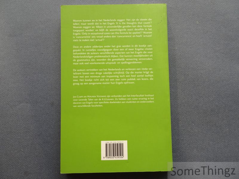 Waarom kunnen we in het Nederlands zeggen Het zijn de ideeën die tellen, maar wordt dat in het Engels it is the thoughts that count? Waarom zeggen we alleen in uitzonderlijke gevallen kan deze formule toegepast worden en blijft de woordvolgorde exact dezelfde in het Engels only in exceptional case can this formula be applied? Waarom is concurrentie iets totaal anders dan concurrence, en heeft actueel niets te maken met actual? Deze en andere addertjes onder het gras worden in dit boekje aangepakt. In korte, toegankelijke fragmenten vertrekken de auteurs van Engelse citaten en behandelen ze verschillende aspecten van het Engels die voor Nederlandstaligen problematisch zijn, waaronder grammaticale moeilijkheden, verwarrende woorden en veel voorkomende uitspraak- en spellingproblemen. De schrijfstijl is vlot en gericht op een breed publiek dat zijn Engels op een aangename manier wil opfrissen.