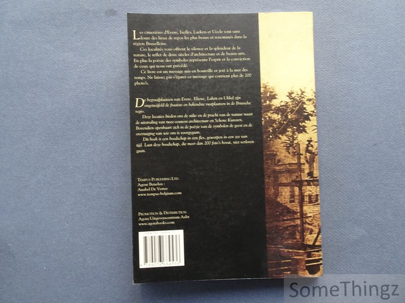 De begraafplaatsen van Evere, Elsene, Laken en Ukkel zijn ongetwijfeld de fraaiste en bekendste rustplaatsen in de Brusselse regio. Deze locaties bieden ons de stilte en de pracht van de natuur naast de uitstraling van twee eeuwen architectuur en Schone Kunsten. Bovendien openbaart zich in de poëzie van de symbolen de geest en de opening van wie ons is voorgegaan. Dit boek is een boodschap in een fles, geworpen in de zee van tijd. Laat deze boodschap, die meer dan 200 foto?s bevat, niet verloren gaan. / Les cimetières d?Evere, Ixelles, Laeken et Uccle sont sans doute des lieux de repos les plux beaux et renommés dans la région Bruxelles. Ces localités vous offrent le silence et la splendeur de la nature, le reflet de deux siècles d?architecture et de beaux-arts. En plus la poësie des symboles représente l?esprit de la conviction de ceux qui nous ont précédé. Ce livre est un message mis en bouteille et jeté à la mer des temps. Ne laissez pas s?égarer ce message qui contient plus de 200 photo?s.