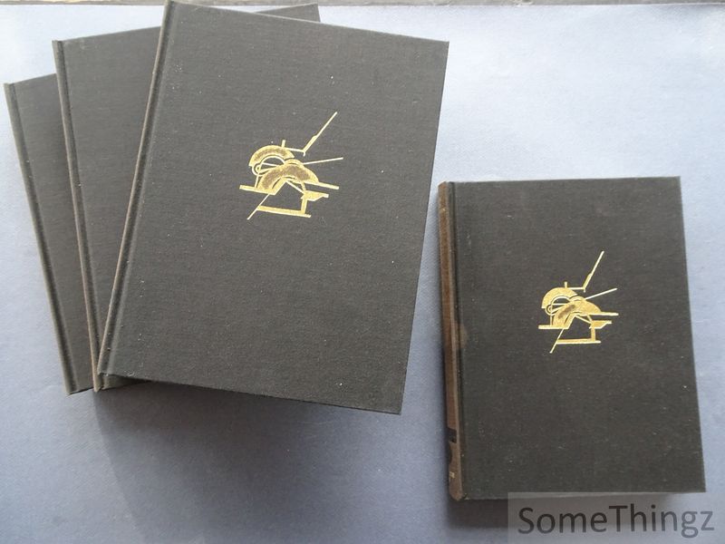 Gebonden, zwart linnen met goudopdruk in linnen schuifdoos, 398+566+303+280pp., 17,5x24cm., in redelijke tot goede staat (ex-bibl. exemplaar: schuifdoos met wat gebruikssporen en beetje verkleurd, ruggen wat verkleurd en met sporen van verwijderde stickertjes, banden met sporen van verwijderd plasticfolie, de gebruikelijke stempeltjes en stickertjes op de eerste pp. maar binnenin verder goed).