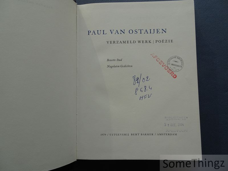 Paul van Ostaijen: Verzameld werk. Proza I: Grotesken en ander Proza. Proza II: Besprekingen en Beschouwingen. Poëzie I: Music-Hall, Het Sienjaal, De Feesten van Angst en Pijn. Poëzie II: Bezette Stad, Nagelaten Gedichten. [4 vol.]