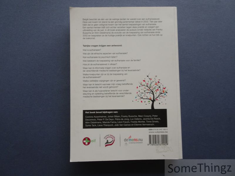 België beschikt als één van de weinige landen ter wereld over een euthanasiewet. Deze wet kwam tot stand na een grondig parlementair debat in 2002. Tien jaar later blijkt dat er geen wildgroei kwam van het aantal toepassingen van euthanasie. Een aantal mensen blijft zich echter verzetten tegen deze praktijk en weigert een uitbreiding van de wet. In dit boek analyseren de auteurs (onder redactie van Franky Bussche en Wim Distelmans) de evolutie van de toepassing van euthanasie sinds 2002 en bespreken ze de huidige praktijk en knelpunten. Ook richten ze hun blik op de toekomst. Talrijke vragen krijgen een antwoord: Wat is euthanasie? Wat zijn de ethische aspecten van euthanasie? Kan euthanasie bij psychisch lijden? Wat betekent de toepassing van euthanasie voor de familie? Hoe zit de euthanasiewet in elkaar? Waar kan ik informatie krijgen over euthanasie en de verschillende medische beslissingen bij het levenseinde? Welke knelpunten zijn er bij de toepassing van de euthanasiewet? Welke wettelijke wijzigingen zijn er gewenst? Waar kan ik terecht wanneer mijn vraag betreffende het levenseinde niet wordt gehoord? Waar kan ik als hulpverlener terecht voor ondersteuning en opleiding betreffende de verschillende medische beslissingen bij het levenseinde? Het boek bevat bijdragen van: Corinne Assenheimer, Johan Bilsen, Franky Bussche, Marc Cosyns, Peter Deconinck, Peter P. De Deyn, Petra de Jong, Luc Deliens, Jacinta De Roeck, Wim Distelmans, Mariola Farina, Léon Favyts, Freddy Mortier, Tinne Smets, Sylvie Tack, Lieve Thienpont, Julie Van Garsse en Etienne Vermeersch.