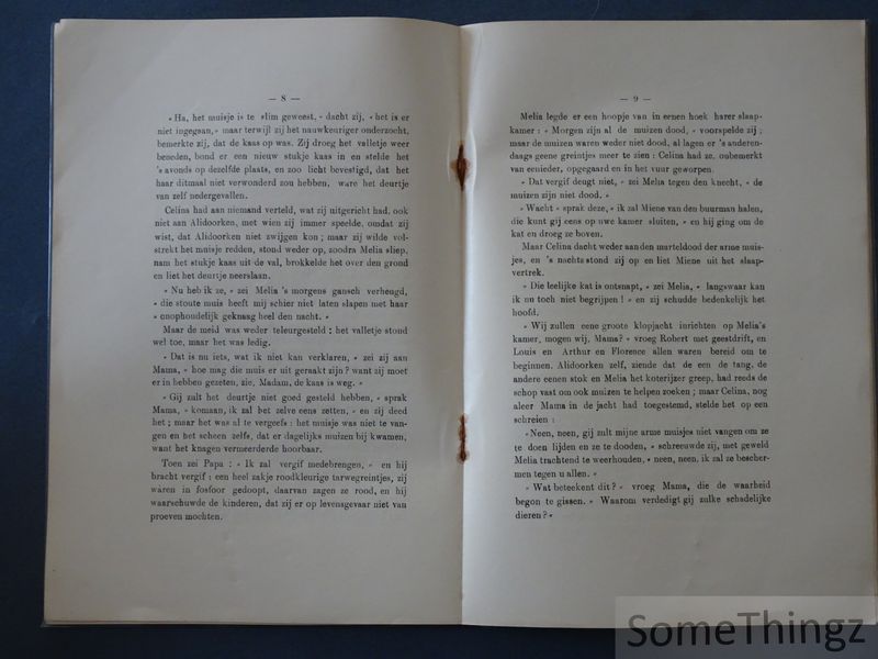 Gebrocheerd, geniet (beschermd met verwijderbare cellofaanfolie), 15pp., 17x25cm., titelillustr. in z/w., in zeer goede staat (omslag wat doorgescheurd rond de nietjes). Schaars. "Verhalen voor kinderen.".