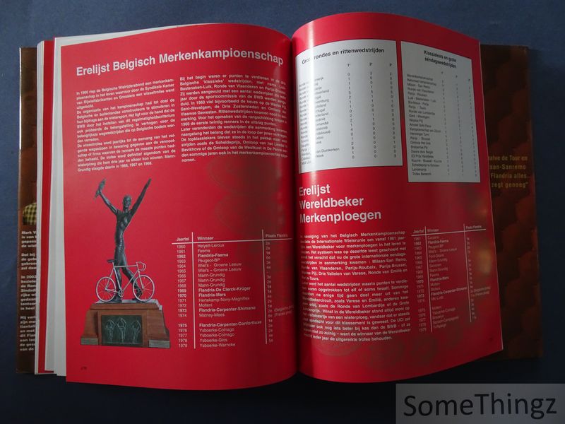 Twintig jaar lang, van 1959 tot en met 1979 behoorde de Flandria wielerploeg tot de wereldtop. Bijna alle Belgische toprenners verdedigden ooit de kleuren van de West-Vlaamse wielerreus. Kleppers als Schotte, Vandaele, Van Looy, Reybroek, Sels, Godefroot, de gebroeders De Vlaminck, Monseré, Leman, Dierickx, Pollentier, Demeyer en Maartens stonden garant voor de grootste successen. Het boek biedt een historische reconstructie van de wielerploeg Flandria gedurende haar actieve periode in het professionele wielrennen. De publicatie behandelt de oprichting van de ploeg, haar organisatorische structuur en de rol van sponsors in de uitbouw van een competitief team. Daarnaast wordt aandacht besteed aan de belangrijkste renners, sportieve prestaties en de evolutie van materiaal en trainingsmethodes binnen het team. Het werk situeert Flandria binnen de bredere context van het Belgische wielrennen en beschrijft de impact van de ploeg op de sportcultuur en publieke perceptie van wielrennen in die periode.