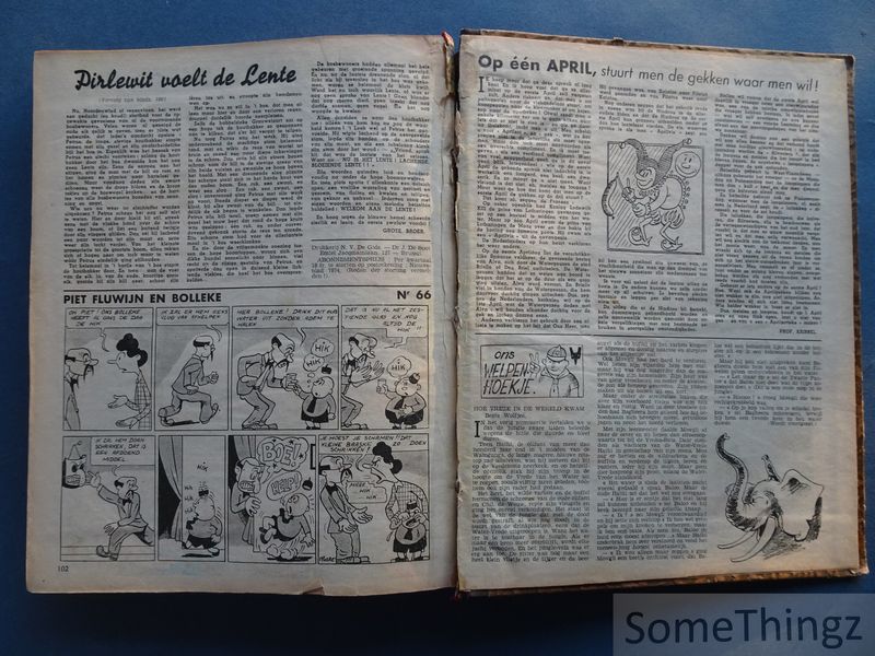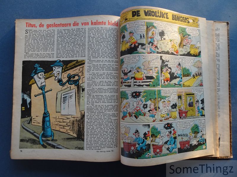 Bundeling van 53 nummers van telkens 8pp., geïllustreerd in kleur en z/w., in redelijke tot goede staat. Schaarse en gezochte vroege nummers. 53 nrs: van jg 2, nr 5 (31 jan 1946) tot en met jg 3, nr 13 (27 maart 1947). Ontbreken uit jg 2 nrs. 7, 29, 30, 31, 32, 33, 34 en 35.