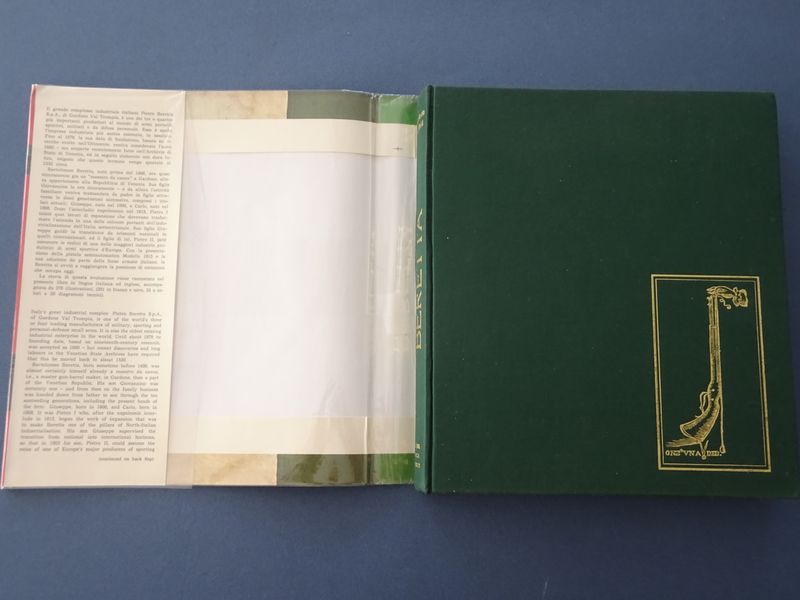 Beretta, The World's Oldest Industrial Dynasaty. Text is in both English and Italian. Bartolomeo Beretta, master gun-barrel maker, was born in Gardone in northern Italy sometime before 1498. From him sprang eleven generations of arms makers, an uninterrupted linear descent from father to son that terminates in the heads of today's great industrial complex, (still situated in Gardone,) the brothers Guiseppe nad Carlo Beretta born respectively in 1906 and 1908. The book recounts that evolution and the role it played in the Venetian Republic, in the Italian Risorgimento and in the two World Wars.