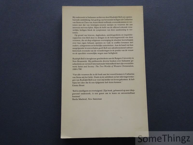 Bij onderzoek in Italiaanse archieven ontdekte Bell dat het gedrag van beroemde vrouwelijke heiligen (zoals waren erg toegewijd aan ascese, vasten en onthouding) opvallende overeenkomsten vertoont met dat van moderne vrouwen met anorexia nervosa. Volgens zijn bevindingen vertoonde bijna de helft van officieel erkende vrouwelijke heiligen symptomen die doen denken aan deze hedendaagse eetstoornis. Aan de hand van brieven, dagboeken, autobiografieën en inquisitierapporten dringt Bell door tot de innerlijke belevingswereld van deze vrouwen. Hun levensverhalen geven een cultuurhistorisch overzicht van de veranderingen in de positie van de vrouw en tonen hoe religieuze ascese vroeger kon dienen als weg naar heiligheid.