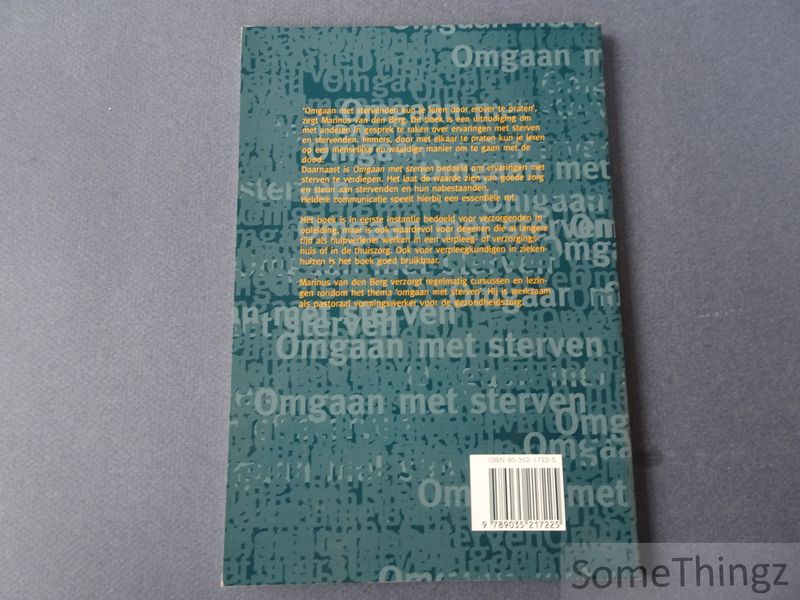 Omgaan met sterven nodigt uit om openlijk te praten over ervaringen met stervenden zodat men leert op een menselijke en betrokken wijze om te gaan met het proces van sterven, met aandacht voor de emotionele, sociale en zorgaspecten die daarmee gepaard gaan; het boek verdiept de betekenis van ervaringen rond sterven en benadrukt tevens het belang van kwalitatieve zorg voor zowel stervenden als hun nabestaanden, met nadruk op respect, empathie en het waardig begeleiden van het laatste levensproces. Omgaan met sterven presenteert in een doorlopend en toegankelijk narratief de manier waarop mensen kunnen omgaan met het proces van sterven, waarbij Marjan van den Berg allereerst op een praktische wijze bespreekt hoe gesprekken en reflecties rond sterfervaringen kunnen bijdragen aan het begrijpen en verdiepen van persoonlijke reacties op het afscheid nemen van het leven, vervolgens reflecteert zij uitvoerig op de rol van zorgverlening, communicatie en emotionele steun in de context van terminale zorg, en door persoonlijke verhalen en algemene overwegingen te combineren met concrete voorbeelden van menselijke interacties met stervenden en hun naasten, levert het boek een genuanceerd beeld van het psychologische, sociale en relationele landschap rond stervensprocessen waarin empathie, wederzijds begrip en zorg centraal staan.