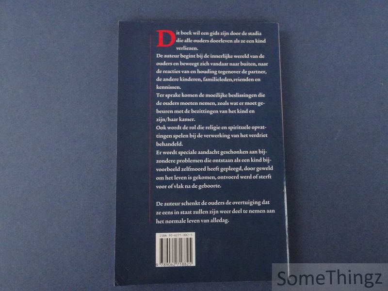 Dit boek wil een gids zijn door de stadia die alle ouders doorleven als ze een kind verliezen. De auteur begint bij de innerlijke wereld van de ouders en beweegt zich van daar naar buiten, naar de reacties van en houding tegenover partner, de andere kinderen, familieleden, vrienden en kennissen. Ter sprake komen de moeilijke beslissingen die de ouders moeten nemen, zoals wat er moet gebeuren met de bezittingen van het kind en zijn/haar kamer. Ook wordt de rol die religie en spirituele opvattingen spelen bij de verwerking van het verdriet behandeld. Er wordt bijzondere aandacht geschonken aan bijzondere problemen die ontstaan als het kind bijvoorbeeld zelfmoord heeft gepleegd, door geweld om het leven is gekomen, ontvoerd werd of sterft vlak voor de geboorte. Juliet Cassuto Rothman is de auteur van dit werk, dat voortkomt uit haar persoonlijke en professioneel geïnformeerde betrokkenheid bij thema's als verlies en rouw. De schrijfster zelf heeft ervaring met het verlies van een kind en zet deze persoonlijke ervaring in om andere ouders en verzorgers te ondersteunen in het omgaan met intens verdriet. Haar werk heeft een begeleidende en praktische insteek en combineert psychologische inzichten met empathische reflecties op menselijke relaties en rouw.
