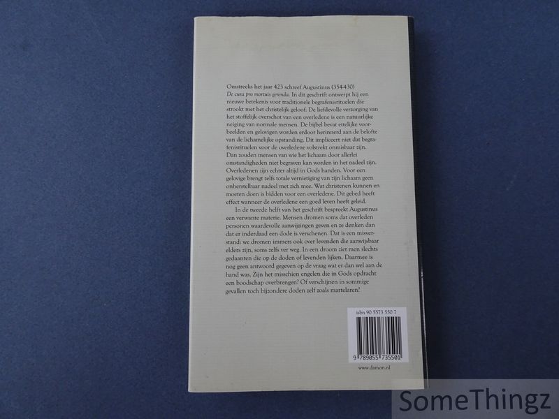 Omstreeks het jaar 423 schreef Augustinus (354-430) De cura pro mortuis gerenda. In dit geschrift ontwerpt hij een nieuwe betekenis voor traditionele begrafenisrituelen die strookt met het christelijk geloof. De liefdevolle verzorging van het stoffelijk overschot van een overledene is een natuurlijke neiging van normale mensen. De bijbel bevat ettelijke voorbeelden en gelovigen worden erdoor herinnerd aan de belofte van de lichamelijke opstanding. Dit impliceert niet dat begrafenisrituelen voor de overledene volstrekt onmisbaar zijn. Dan zouden mensen van wie het lichaam door allerlei omstandigheden niet begraven kan worden in het nadeel zijn. Overledenen zijn echter altijd in Gods handen. Voor een gelovige brengt zelfs totale vernietiging van zijn lichaam geen onherstelbaar nadeel met zich mee. Wat christenen kunnen en moeten doen is bidden voor een overledene. Dit gebed heeft effect wanneer de overledene een goed leven heeft geleid. In de tweede helft van het geschrift bespreekt Augustinus een verwante materie. Mensen dromen soms dat overleden personen waardevolle aanwijzingen geven en ze denken dan dat er inderdaad een dode is verschenen. Dat is een misverstand: we dromen immers ook over levenden die aanwijsbaar elders zijn, soms zelfs ver weg. In een droom ziet men slechts gedaanten die op de doden of levenden lijken. Daarmee is nog geen antwoord gegeven op de vraag wat er dan wel aan de hand was. Zijn het misschien engelen die in Gods opdracht een boodschap overbrengen? Of verschijnen er in sommige gevallen toch bijzondere doden zelf zoals martelaren? Augustinus erkent dat zijn inzicht hier tekortschiet. Aurelius Augustinus (354?430), beter bekend als Augustinus van Hippo, was een vroege kerkvader, filosoof en theoloog. Hij wordt beschouwd als een van de meest invloedrijke christelijke denkers in de geschiedenis. Zijn werken ? waaronder Belijdenissen, De stad van God en De cura pro mortuis gerenda ? hebben diepgaande invloed gehad op de ontwikkeling van de christelijke theologie en Westerse filosofie. In deze latere brief onderzoekt hij ten diepste vragen rond rituelen, hoop en de omgang met de doden in het licht van geloof en opstanding.