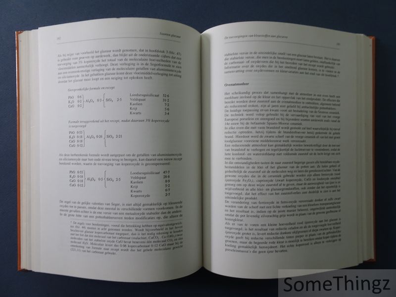 Inhoud: 1886: Seger ontwikkelt formules voor kegels en glazuren / Glazuurrecpten uit kegelformules / Glazuuronderzoek met behulp van formules / Loodglazuren / Glazuren met alkaliën en alkalische aarden / Boorglazuren / Zinkglazuren / Toevoeging van kleurstoffen aan glazuren / Glazuurbereiding / Aanbrengen van glazuren / Bepreoven van glazuren / Glazuurfouten / Aanhangsels.