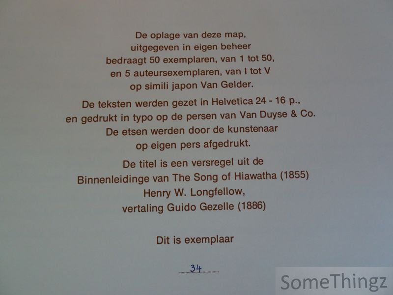 Losbladig in originele linnen map, 15 bladen met gedichten, vijftien bladen met etsen (elke ets gesigneerd in potlood), formaat 49x33cm., in zeer goede staat. Compleet.