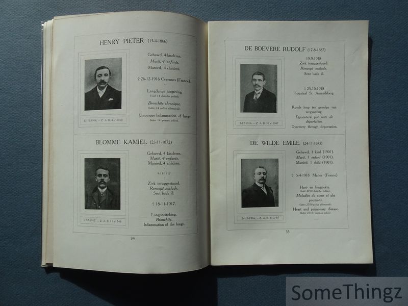 Deze schaarse publicatie bevat namen en portretten van de teruggekeerde en overleden weggevoerden, alsmede details over hun gezondheidstoestand en/of doodsoorzaak. De 16 pagina's bevatten statistische gegevens betreffende de weggevoerden, alsook voorbeelddocumenten van de Duitse bezetter zoals opeisingsbevelen, overlijdensbrieven, modelantwoorden op vraag voor vrijstelling of schadevergoeding, enz.